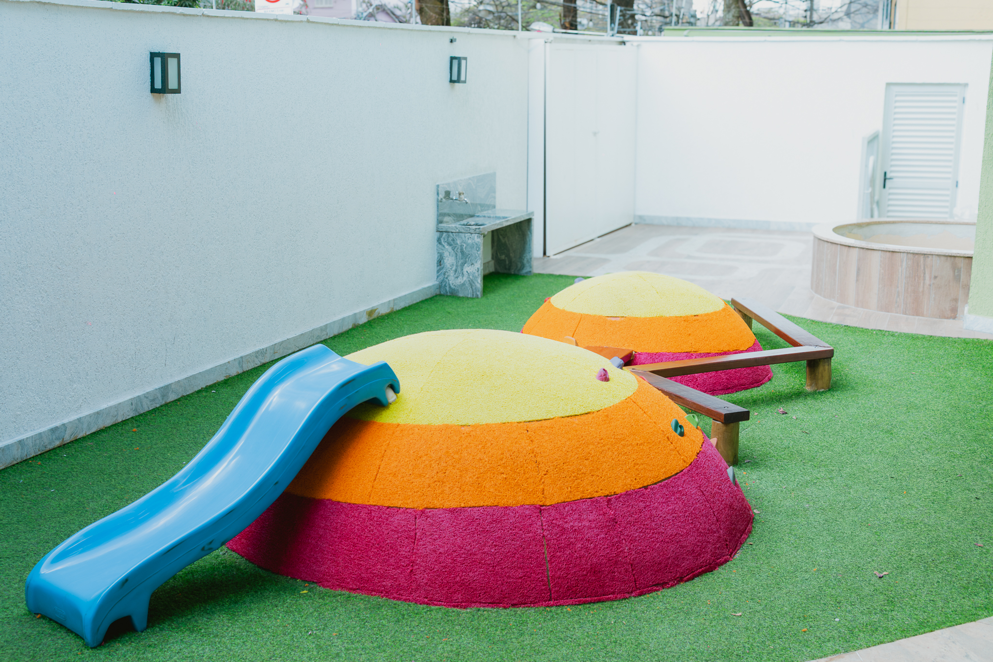 Todas as salas climatizadas, com data show, serviço de som,  internet, além de materiais pedagógicos específicos para cada faixa etária